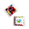 If you own a business, restaurant, or any other trendy establishment that incorporates colours into its name or logo, then this is the perfect promotional item for you. Introducing our flip lid cardboard box filled with 25g of delightful chocolate beans. Not only is this box completely plastic-free, but it also features a tamper seal for added security. Once all the scrumptious treats inside are consumed, this box is fully recyclable. Each box also includes a detailed list of ingredients and a ‘best before’ date. With ample space on both the front and back, this box provides an excellent opportunity to showcase your brand or logo. Whether you’re looking to increase brand awareness or simply want a unique and eye-catching promotional item, our Sustainable Sweet Box has got you covered.